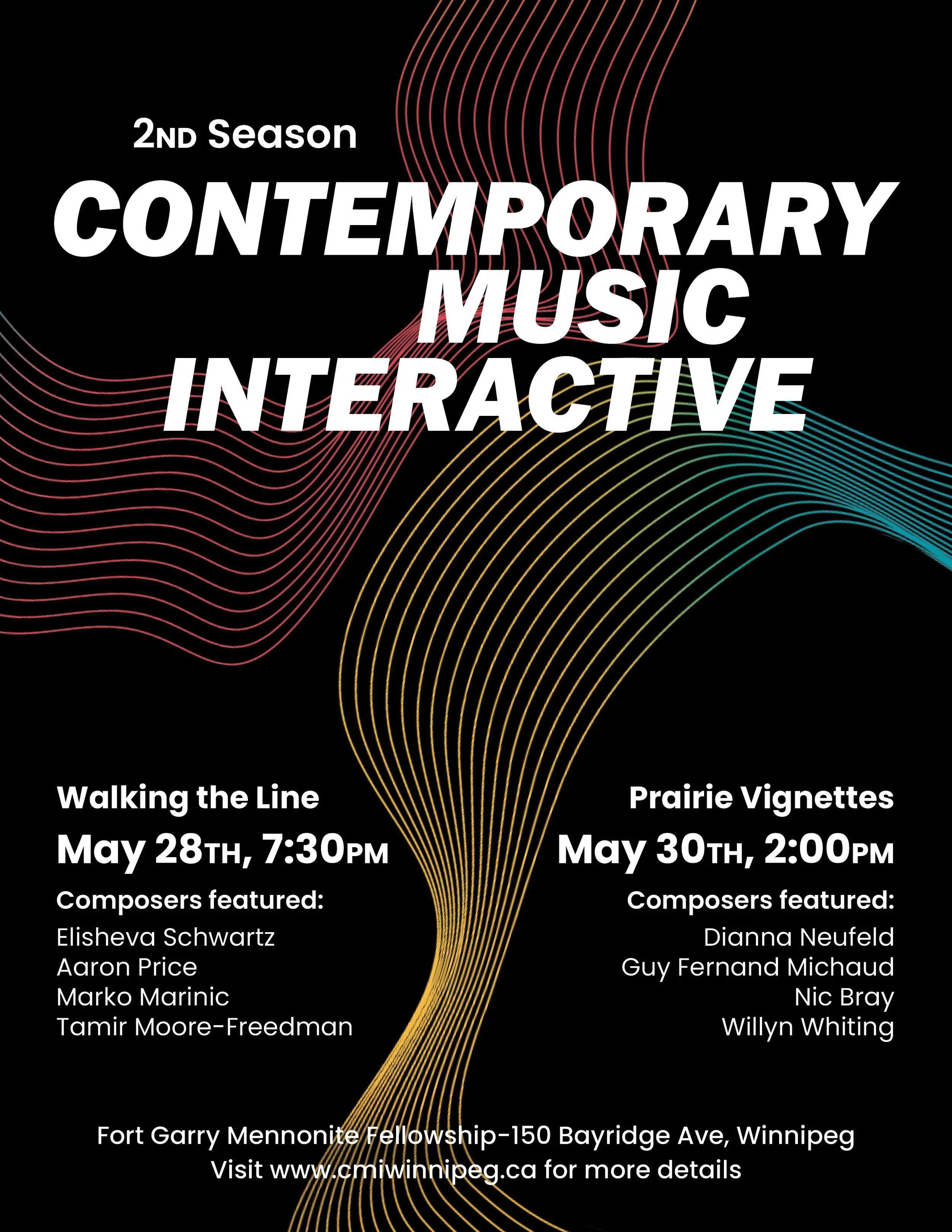 CMI is excited to welcome you to our 2026 season where we will be presenting 8 up-and-coming Manitoban composers from various walks of life and stages of their compositional journeys. The music will be presented by 12 incredible local performers.